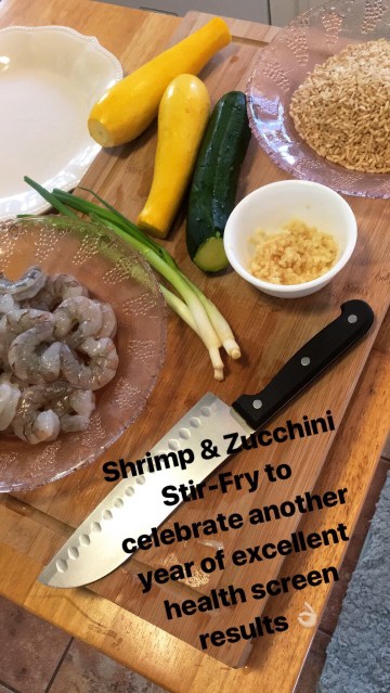 I wanted to share with you the meal I made last night, because it was really quick to put together and cook, and tasted SO good! This was actually one of those “mix-n-match” meals that I tossed together with ingredients I already had on hand. It was a shrimp & squash stir-fry over brown rice.