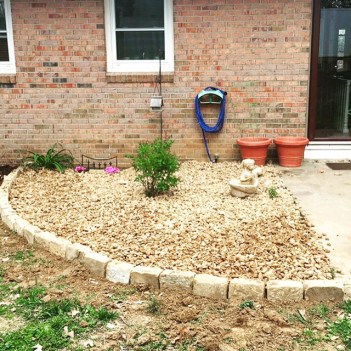 I’ve been planning this landscaping project since last year, and finally completed it on Saturday. I installed 26 landscape edging blocks and around 1,200 pounds of rock in the new bed I mapped out beside my patio. My lilac bush, which is filling up with buds threating to burst open in the coming weeks and fill the air with their romantic scent, is right in the center of the bed. There are some lilies in the back that were already in the ground when I bought the house that I transplanted to their new location, and I added a couple of creeping phlox for a pretty pop of all-summer color.