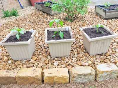 The rest of the plants in the bed will be in pots, and will be grown to feed my family. I bought jalapeno, green bell, and yellow bell pepper plants, put them in pots, and placed them in the bed. The tomato plant selection is still sparse, so I’ve only purchased an Early Girl so far. I still plan to buy a Roma plant for making salsa, and an Heirloom Brandywine plant, because those are my absolute favorite tomatoes. I also planted some cilantro, sage, gerbera daisies, and dahlia’s in various pots around my back yard.