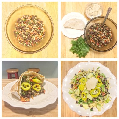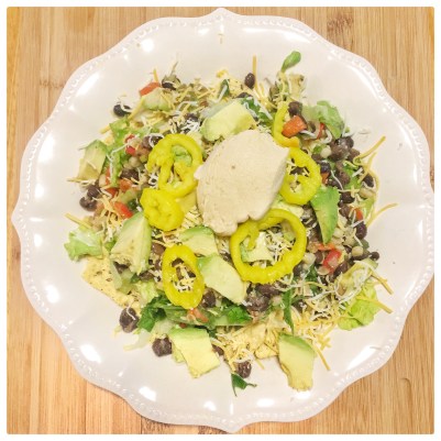 On Sunday I made the same pita pocket for lunch, then made nachos for dinner using multigrain tortilla chips, a cup or two of torn lettuce, a cup of the black bean salsa, shredded cheese, half of a diced avocado, banana pepper rings and a tablespoon of hummus. And today I’m going to top a salad with a cup of this salsa, some more banana pepper rings, and a tablespoon of Newman’s Own Olive Oil & Vinegar Dressing (my favorite salad dressing).