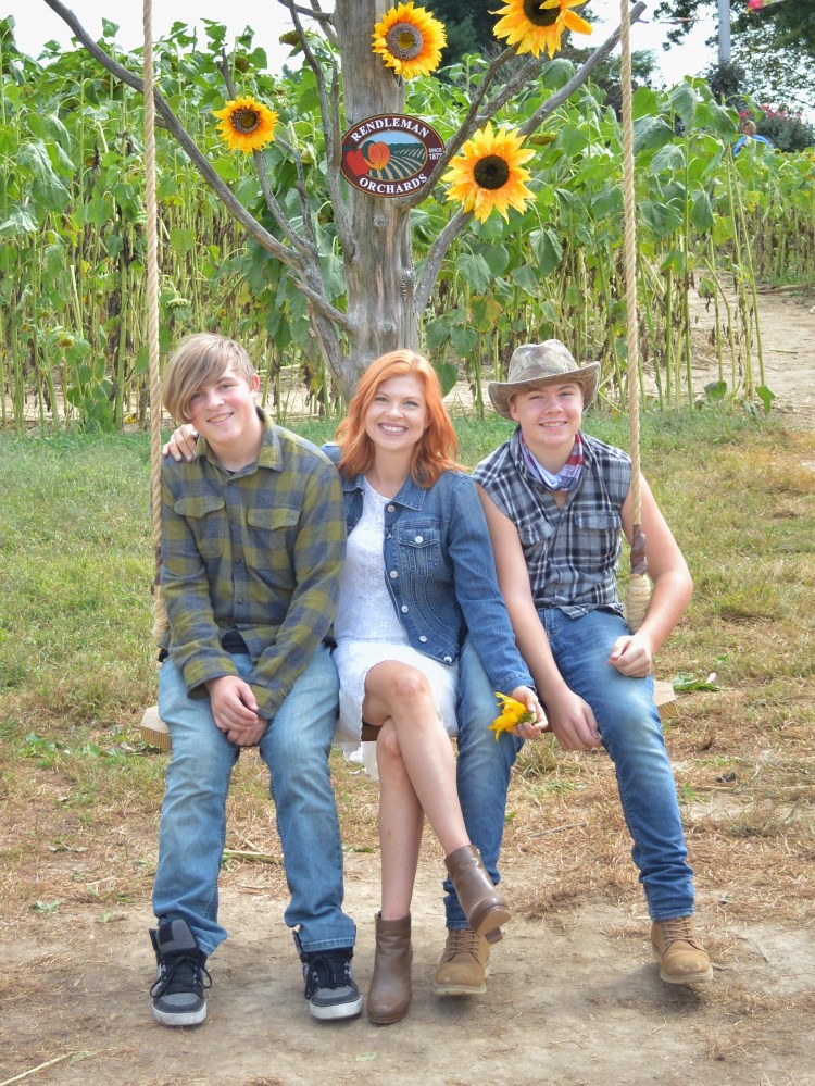 So we went. I ignored everything going on around me and focused on my people. I snapped pictures at every cute spot the orchard had set up. I carried a sunflower from Michael’s son Gabriel, and donned another in a button-hole where my son Logan pinned it. I bought the kids apple cider and all of us apple donuts, and we sat on the porch to eat and I savored every last bite. I let my soul be completely happy, because life was happening right then and there, in that moment, not in some future moment down the road that would never seem to come.