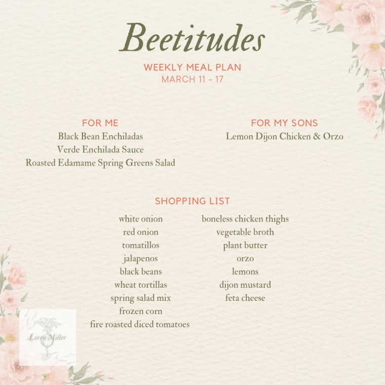 I will have this meal plan out on Wednesday, so if you’d like to make anything from it for the upcoming week, you have time to plan and gather your supplies. I do plan on making the enchiladas in my YouTube vlog this week, which will be out on Sunday. Feel free to head on over to my YouTube channel if you’d like to see me make it in action! I will also try to remember to come back and link the exact vlog here once it is live (I can’t generate a link until it’s public)!