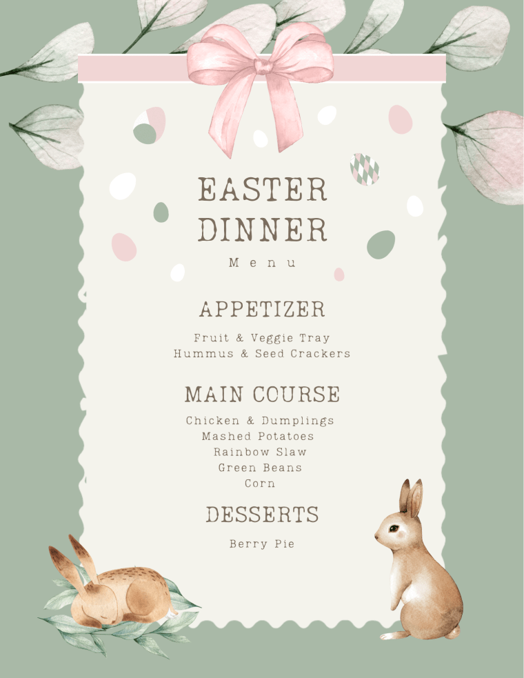 Here is the menu for Easter, and I will include a downloadable .pdf of both the menu and shopping list below.