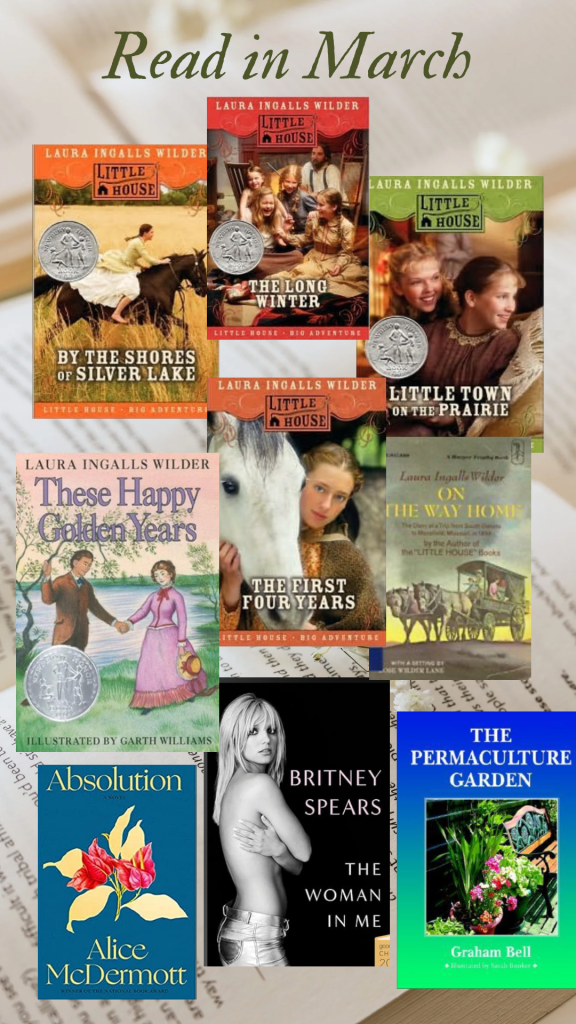 March was a full month of reading! I finished up the Little House series, which are quick reads and why I have so many books for this month!